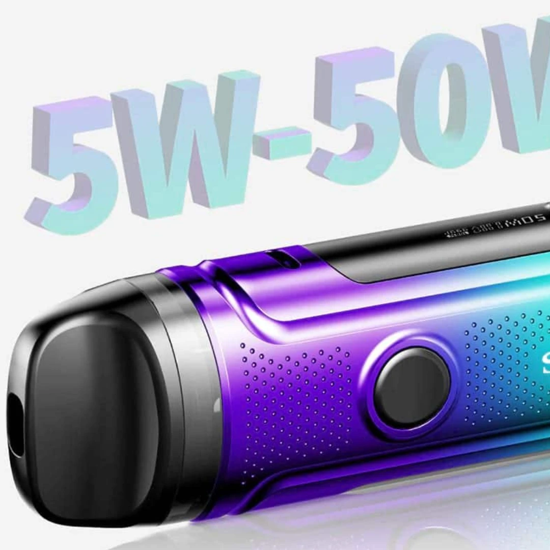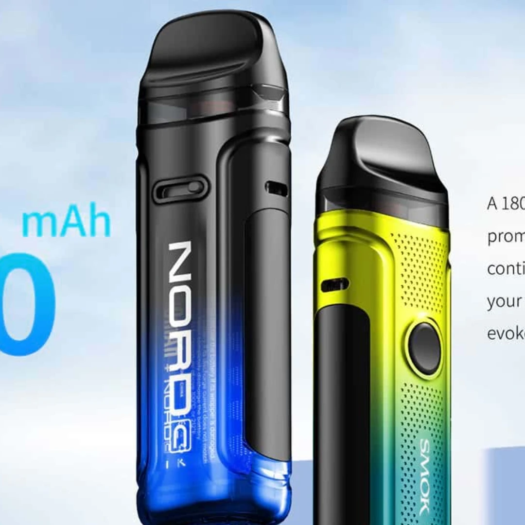 The Smok Nord C Pod Vape Kit is a robust and powerful vaping system suitable for mouth-to-lung (MTL) and direct-to-lung (DTL) vaping. It features a large built-in 1800 mAh rechargeable battery with up to 50 watts of maximum power, step-less airflow control and top-fill RPM 2 coil-compatible Nord C refillable e-liquid pods.